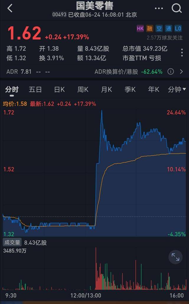 國美最新股票概況